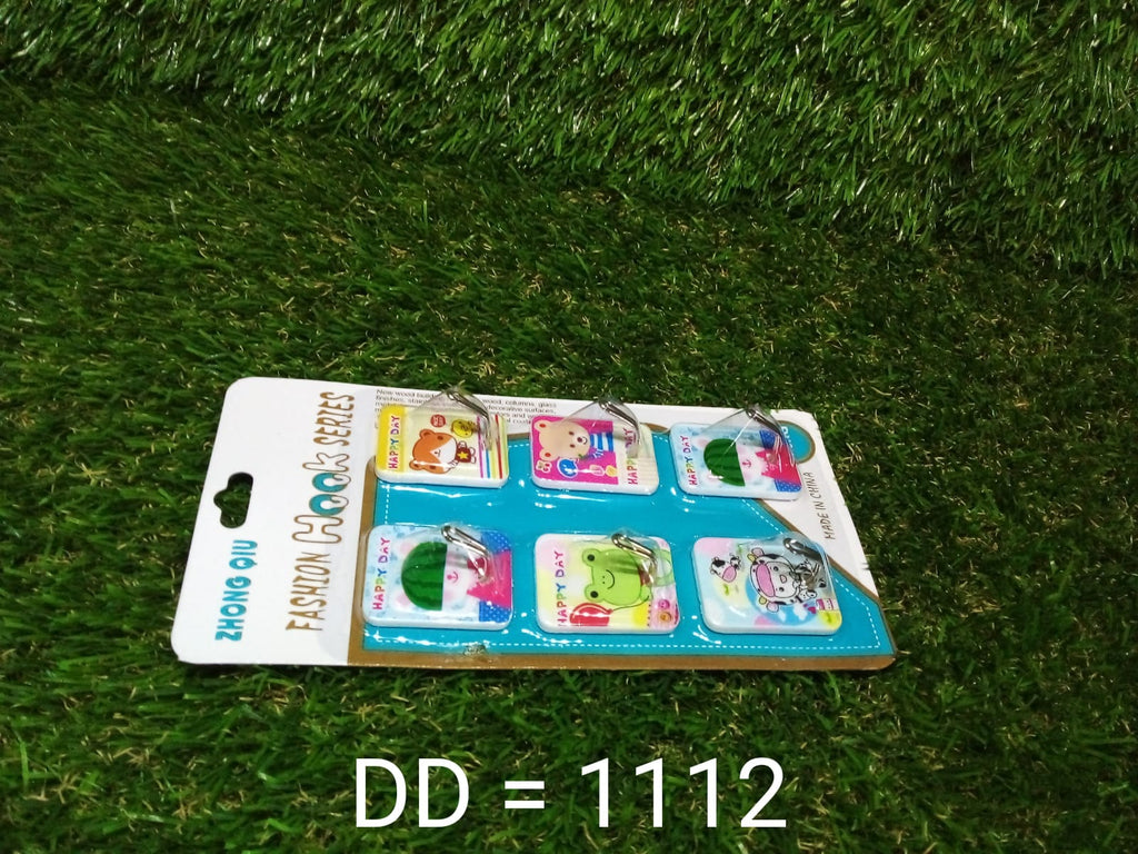 Multipurpose Adhesive Hooks for Walls / Kitchen / Bathroom 6 pc (Multicolor)